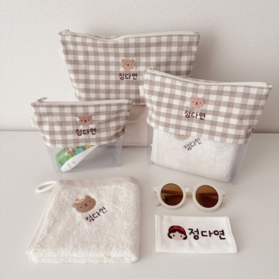 핑크,옐로,민트체크 파우치에비해 두께감이 있습니다.