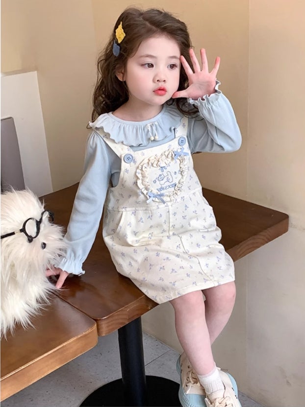블루잔꽃멜빵원피스세트 ★