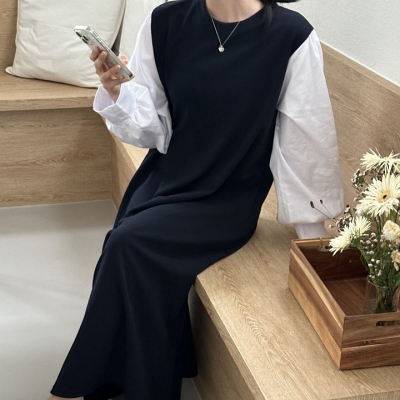 lu.퍼프배색롱원피스