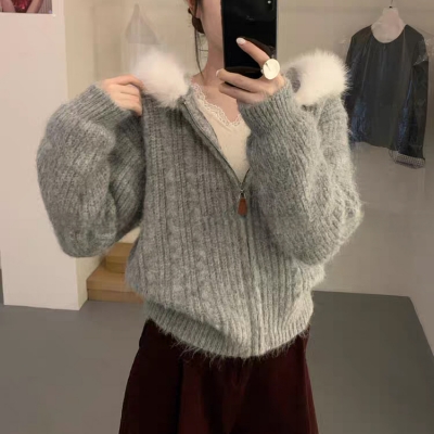 on.[CD595]퍼후드집업가디건